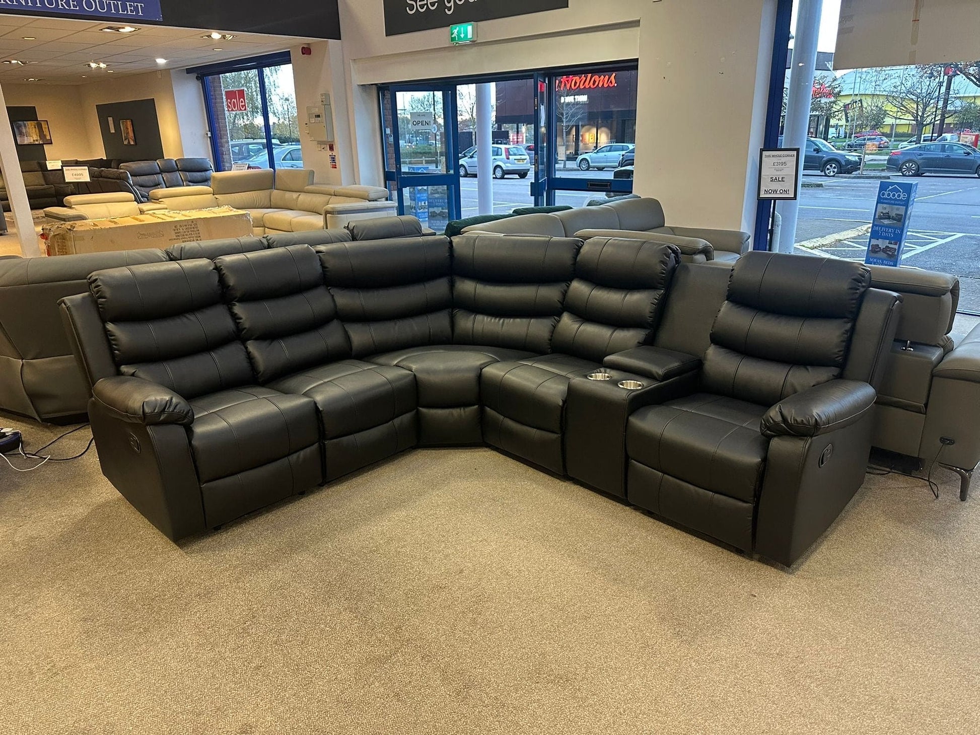 Black Leather 'Lando' 2c2c Reclining Corner Sofa | Reversible & Modular | Drinks Console | High Backrest | Built To Fit Any Home | Couch |