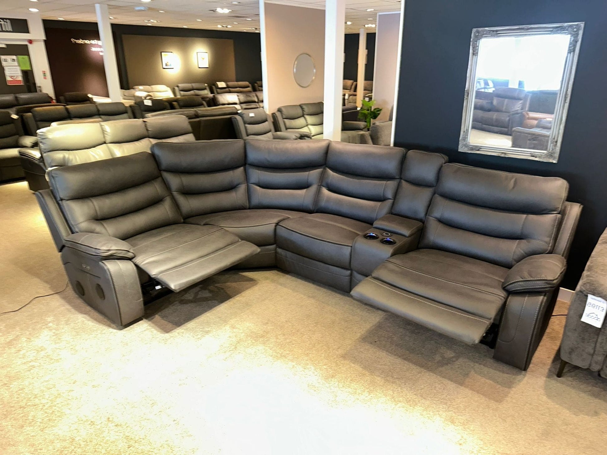 Limited Time Offer! Parker Electric Recliner Grey Leather Corner Sofa With Console