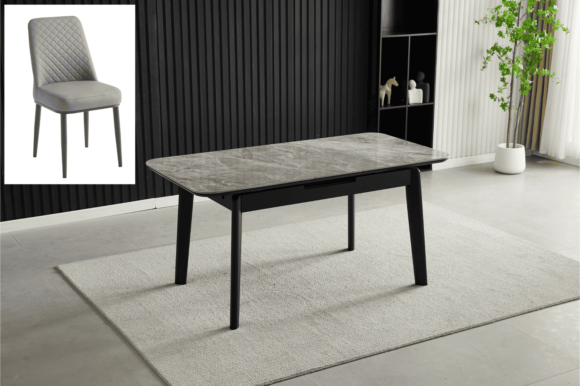 Extendable Dining Table(130cm to 160cm) (Grey Ceramic)