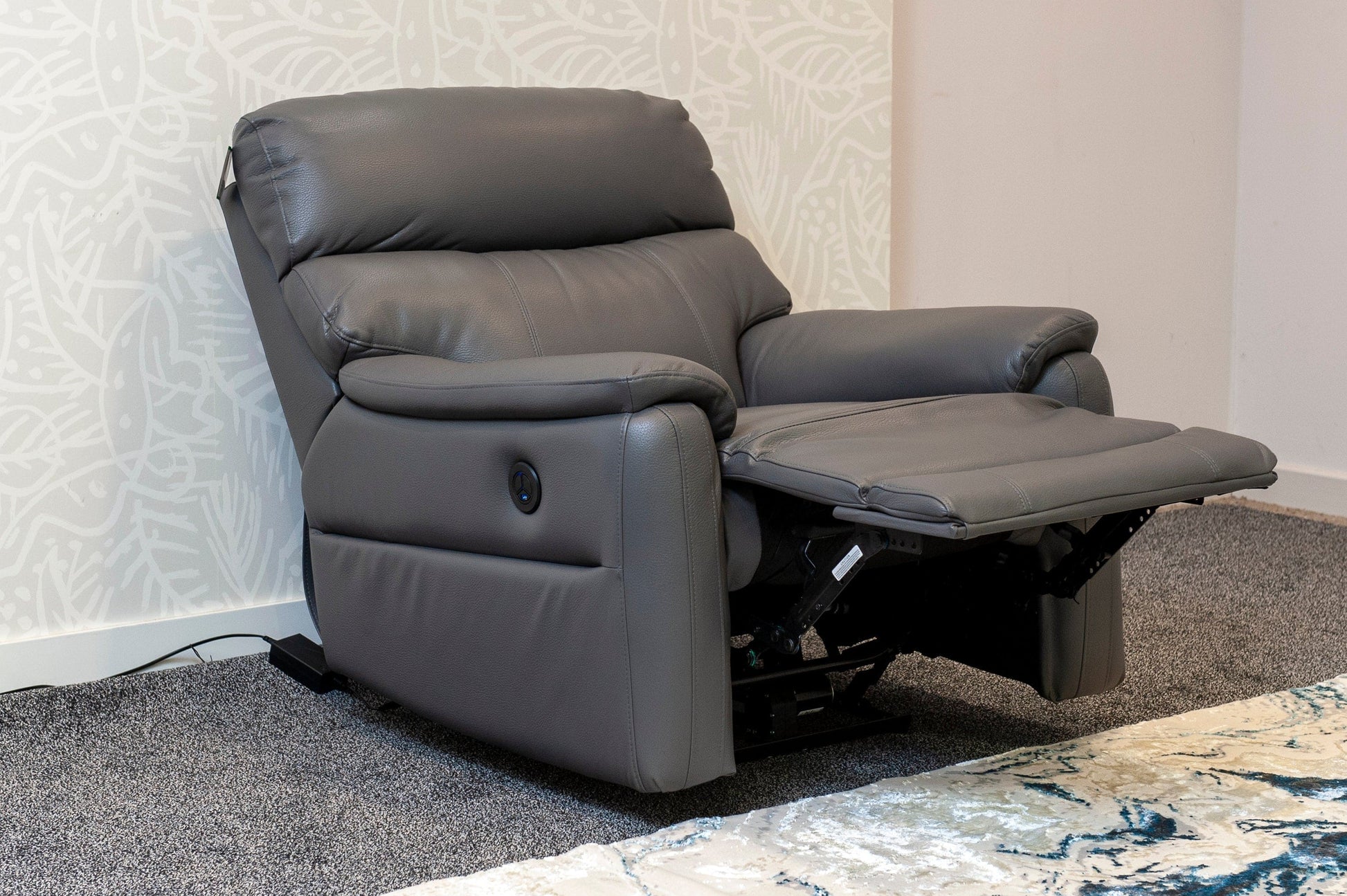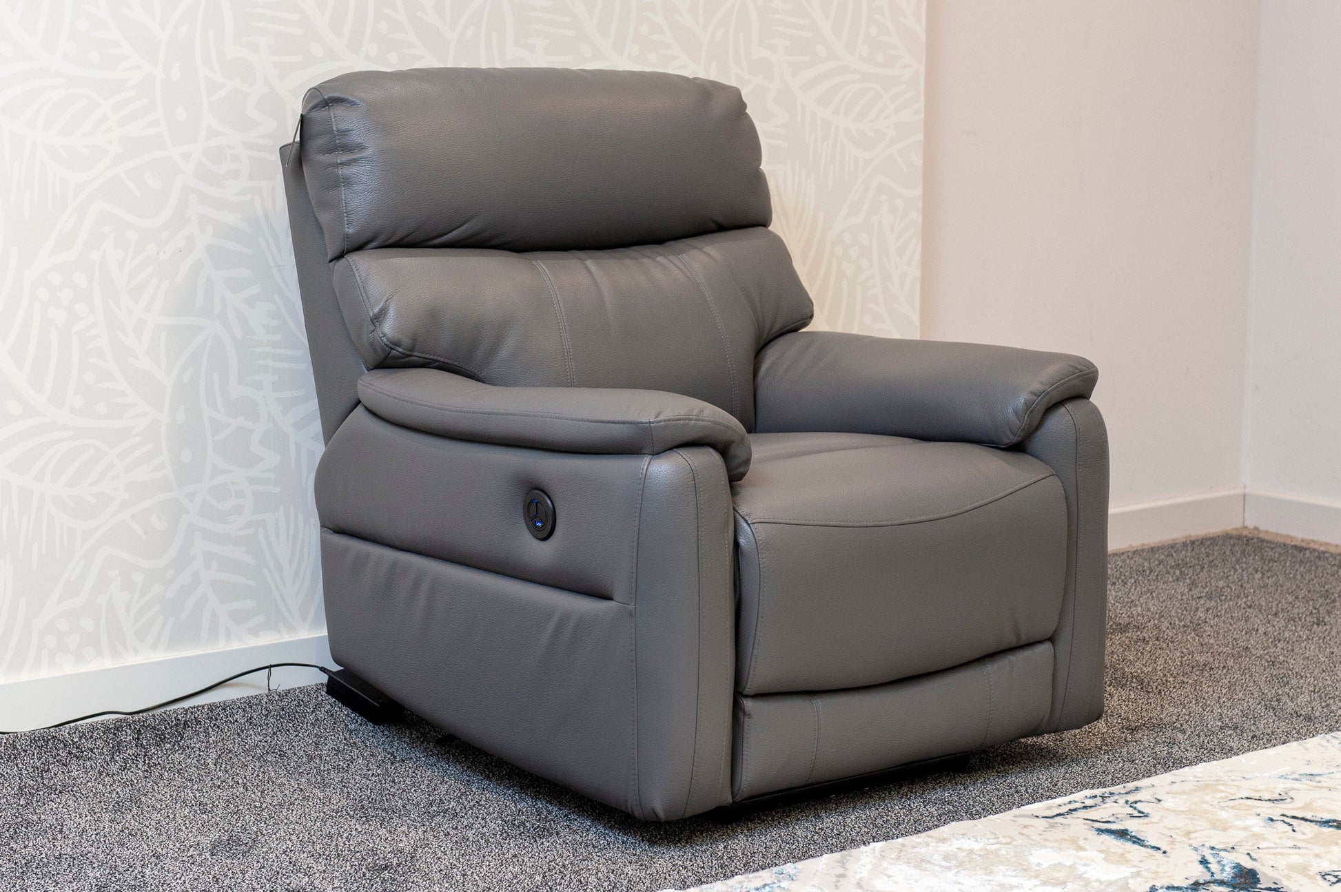 Plaza Top Grain Grey Leather Power Recliner Sofa Range with Adjustable Headrests