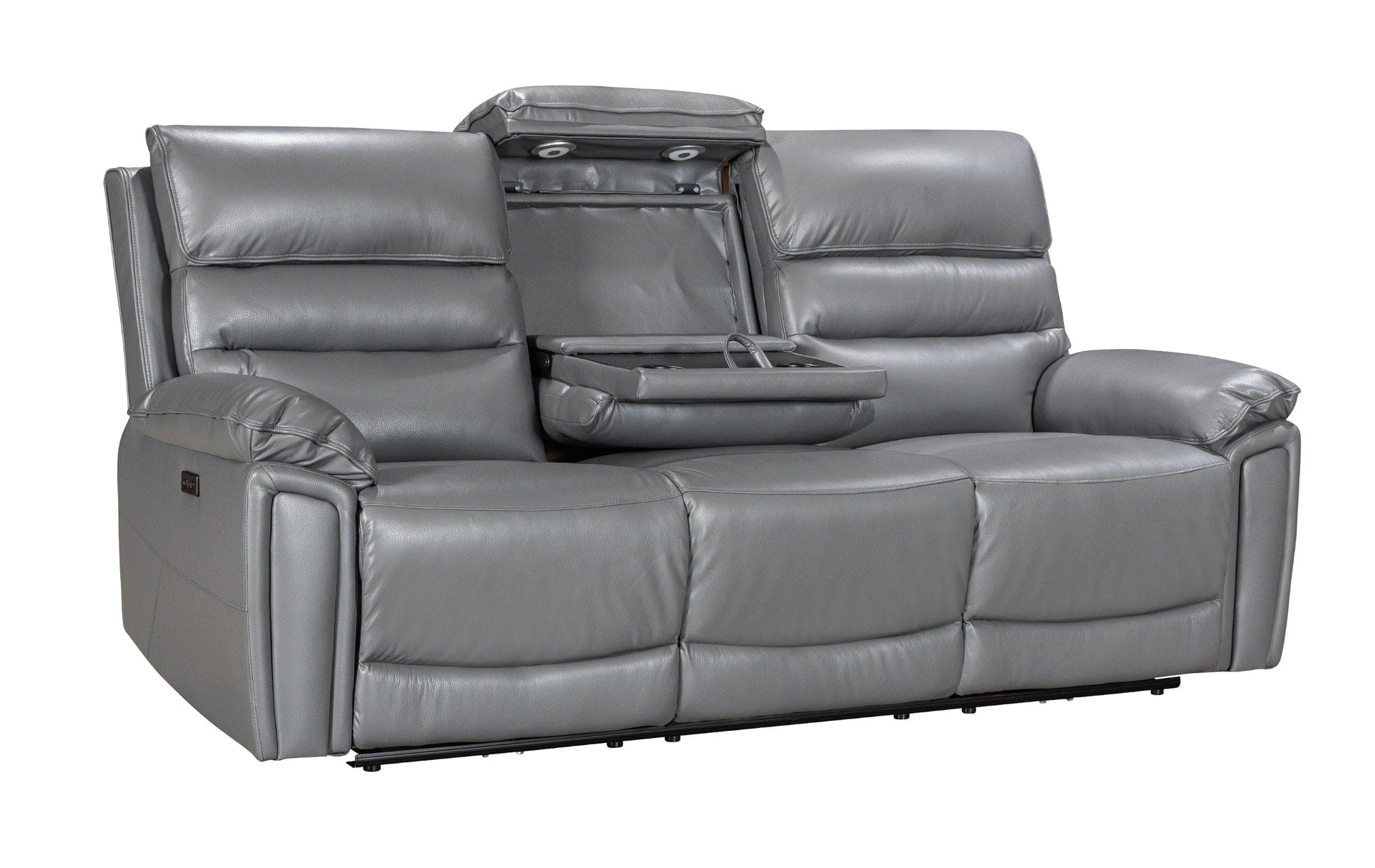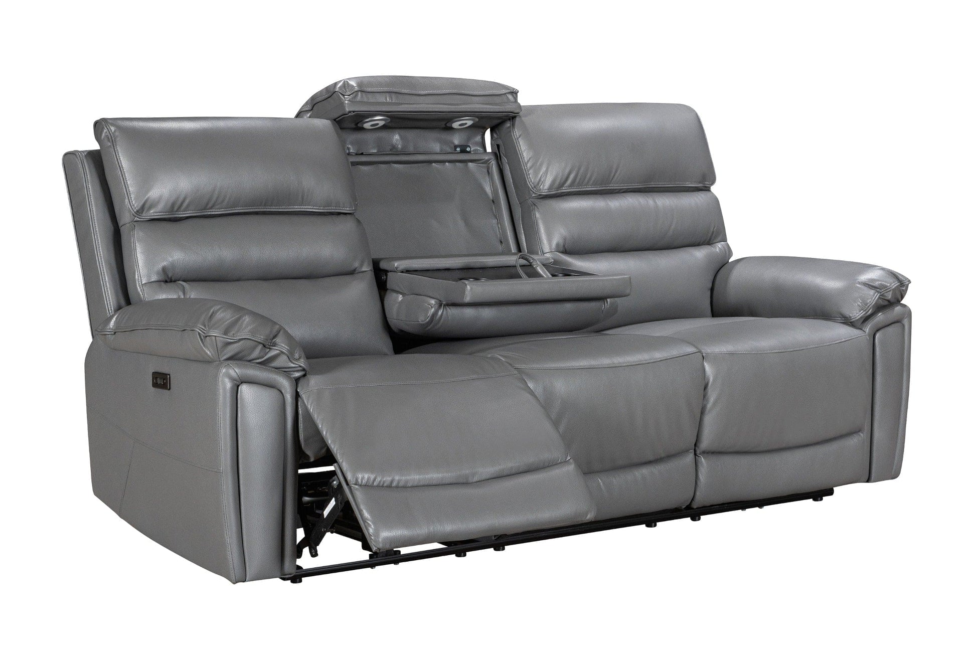 Donald Grey Leather Electric / Power Reclining 3 Seater Sofa With Drinks Coolers USB Charging Ports & Drop Down Tray Table