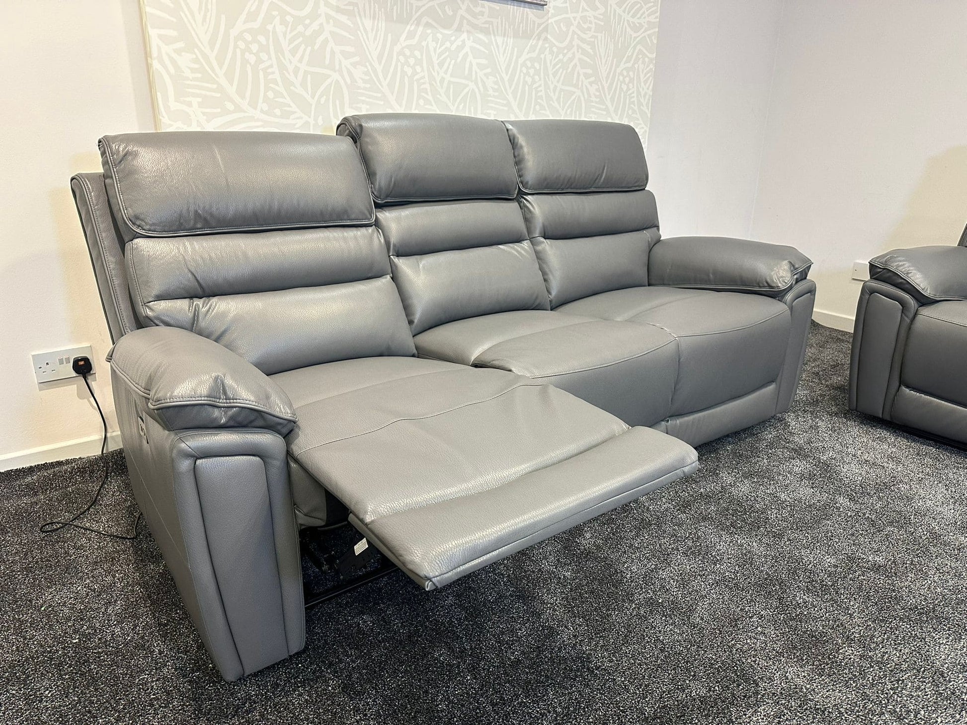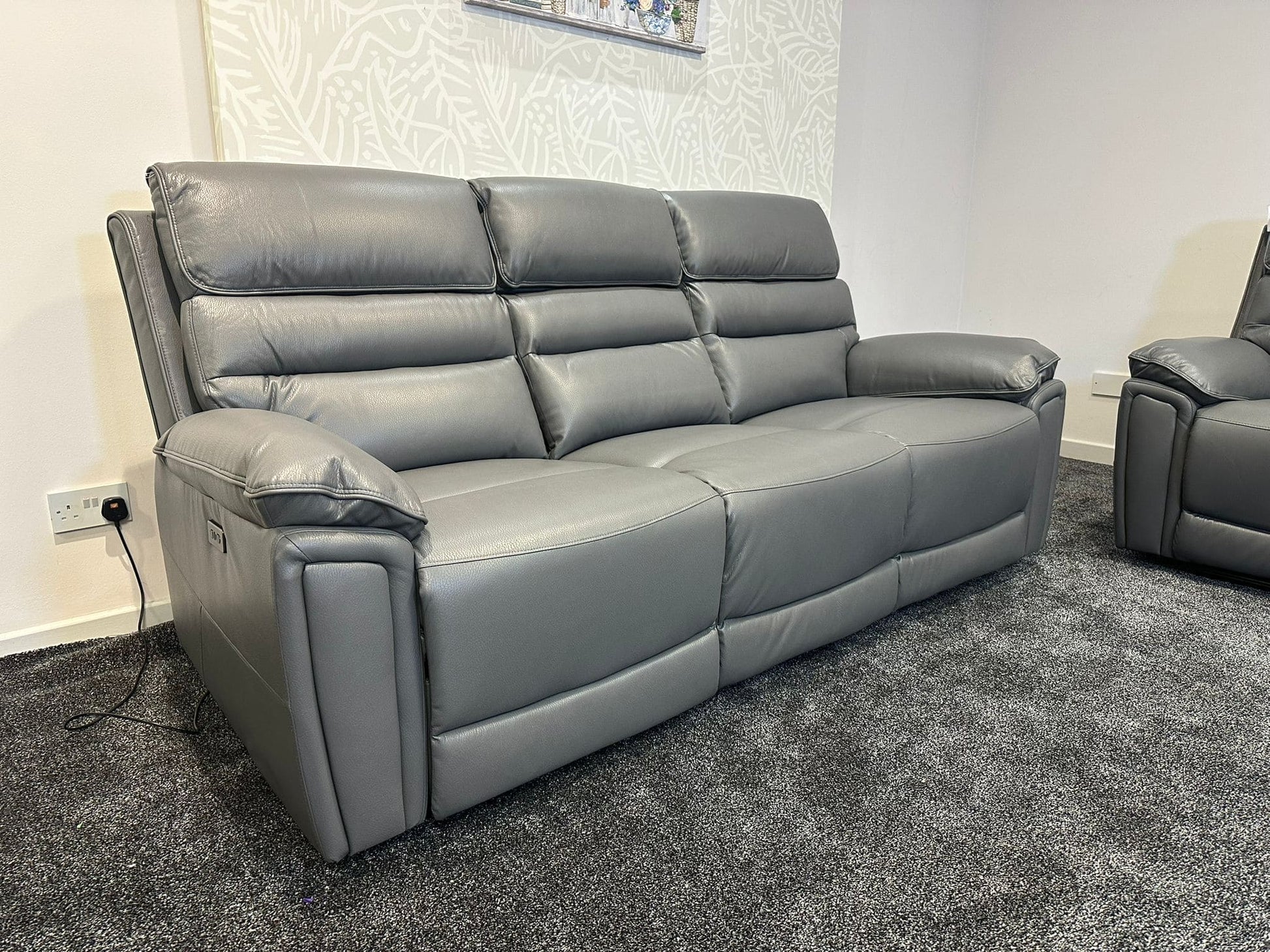 Plaza Top Grain Grey Leather Power Recliner Sofa Range with Adjustable Headrests