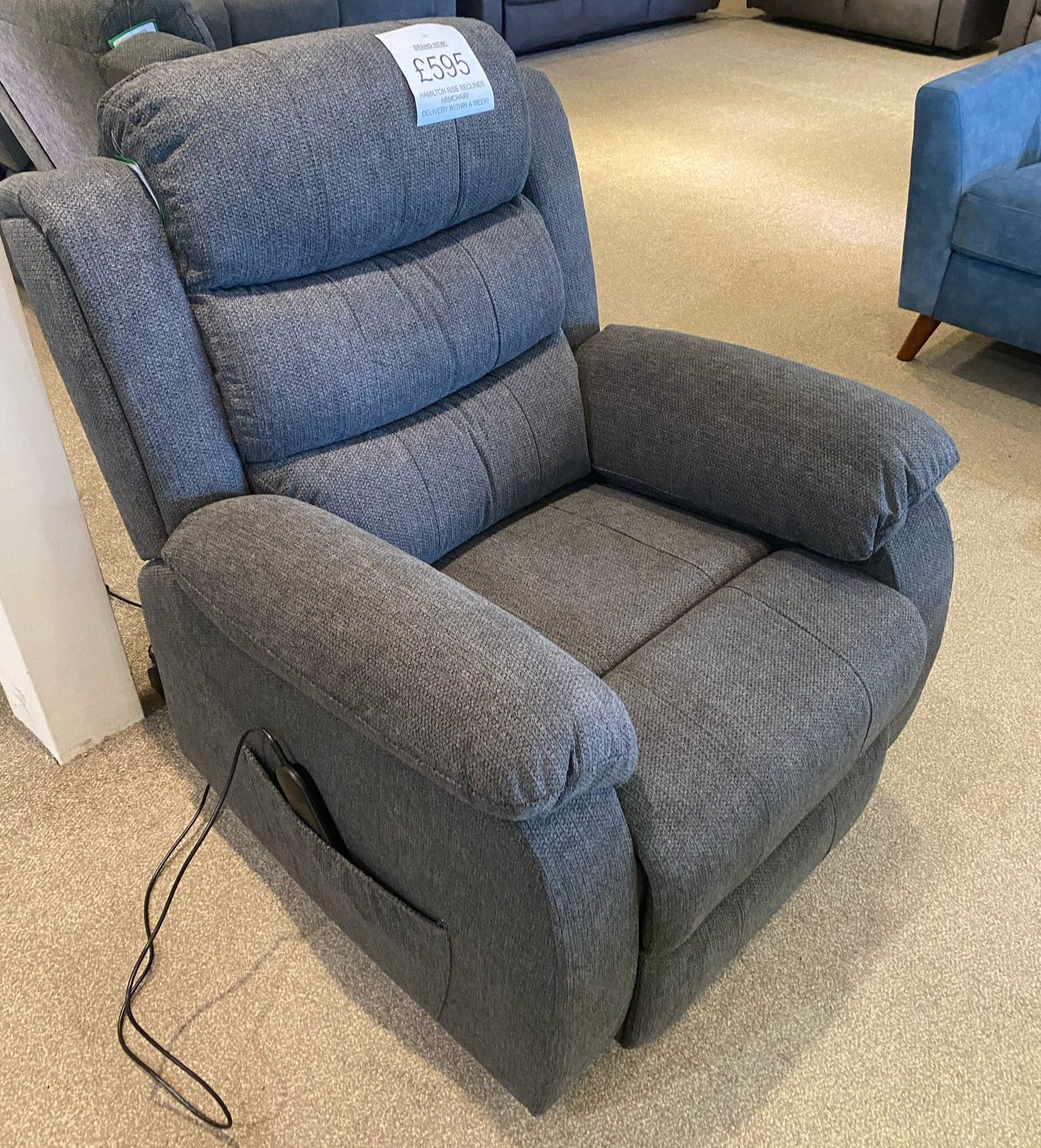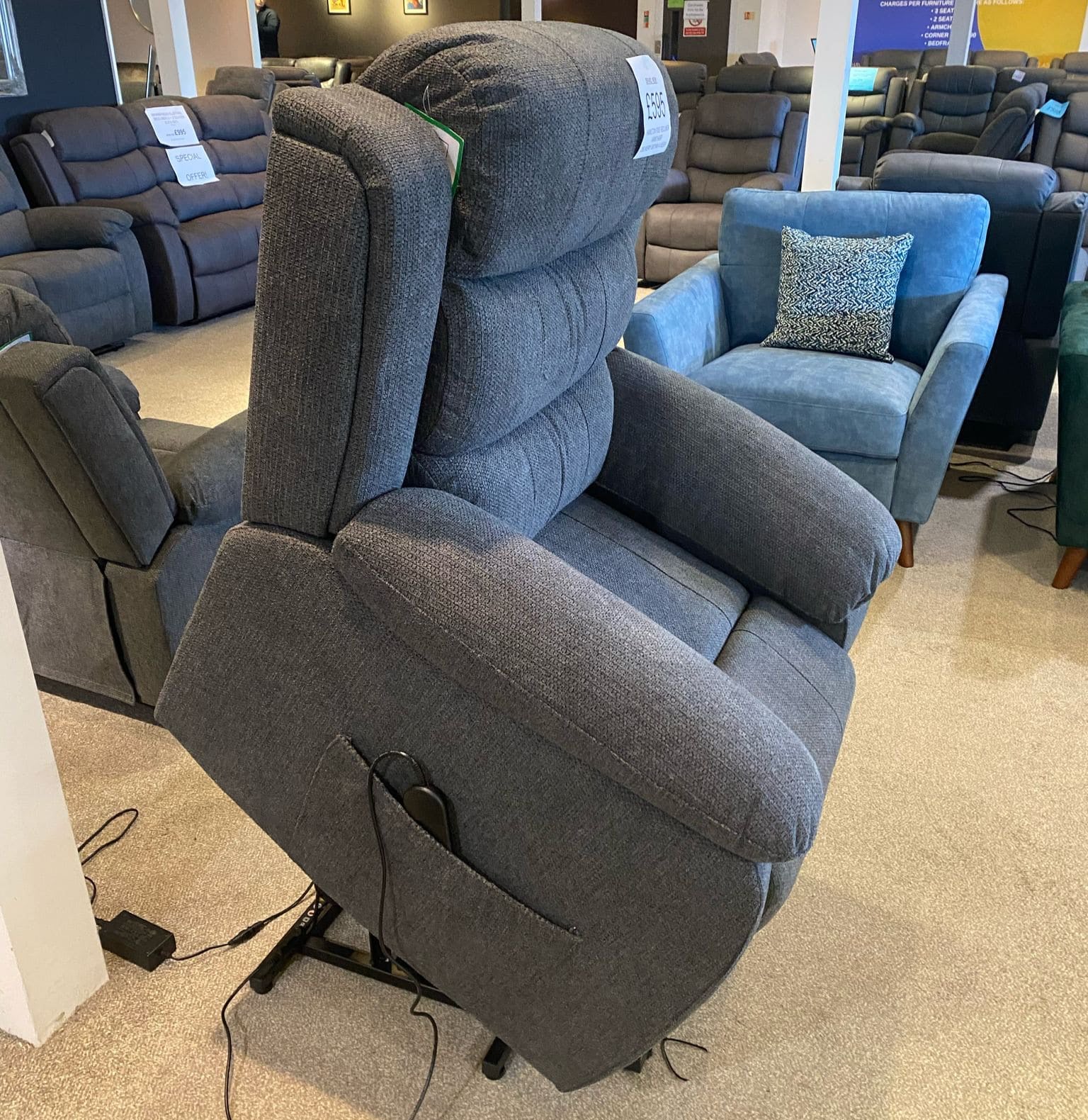 Electric Lewson Grey Fabric Rise & Recliner 1 Seater Sofa / Armchair