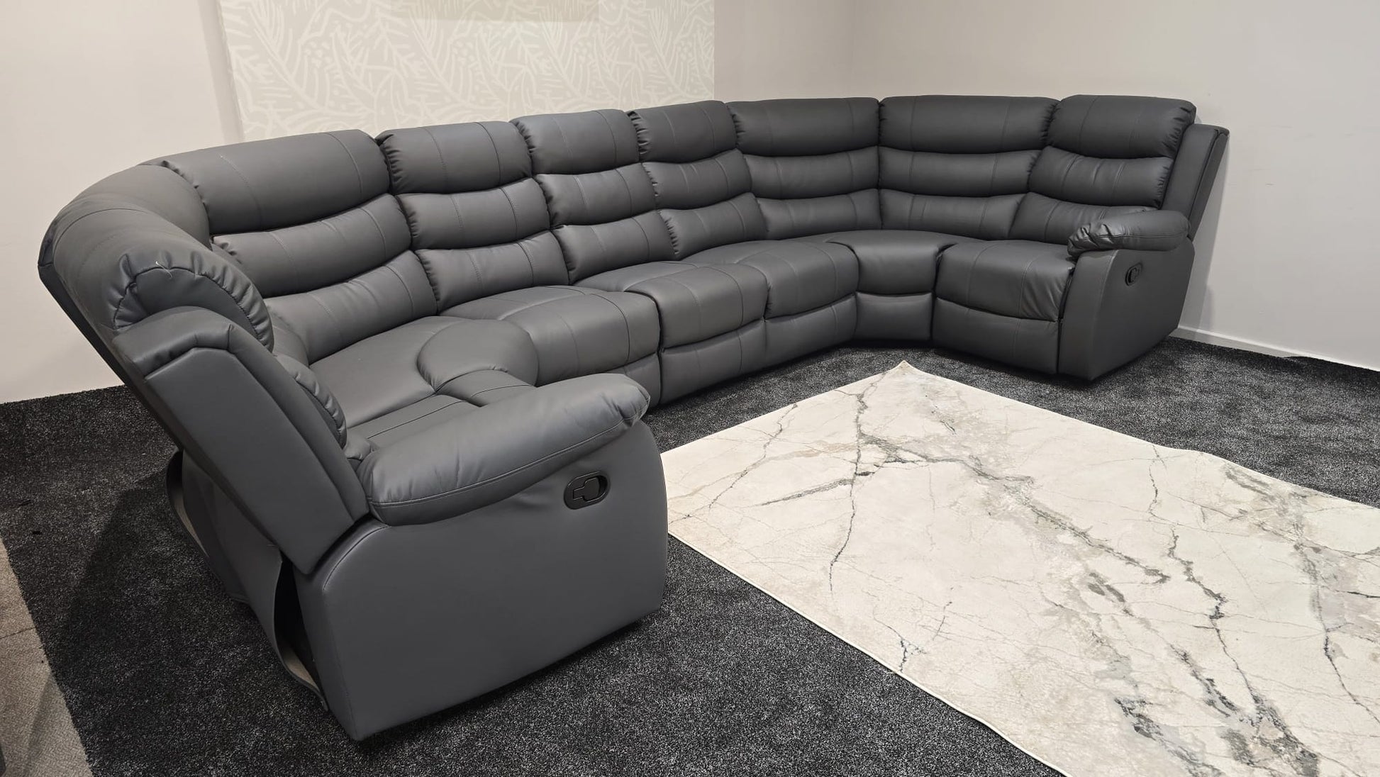 "Lando" Grey Leather 3C3C Recliner Corner Sofa Reversible | Drinks Tray Table | Modular