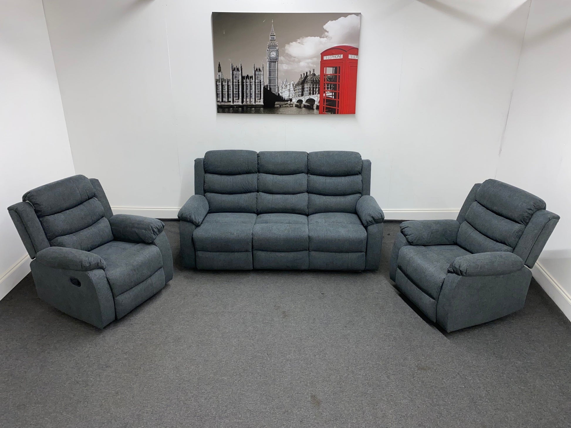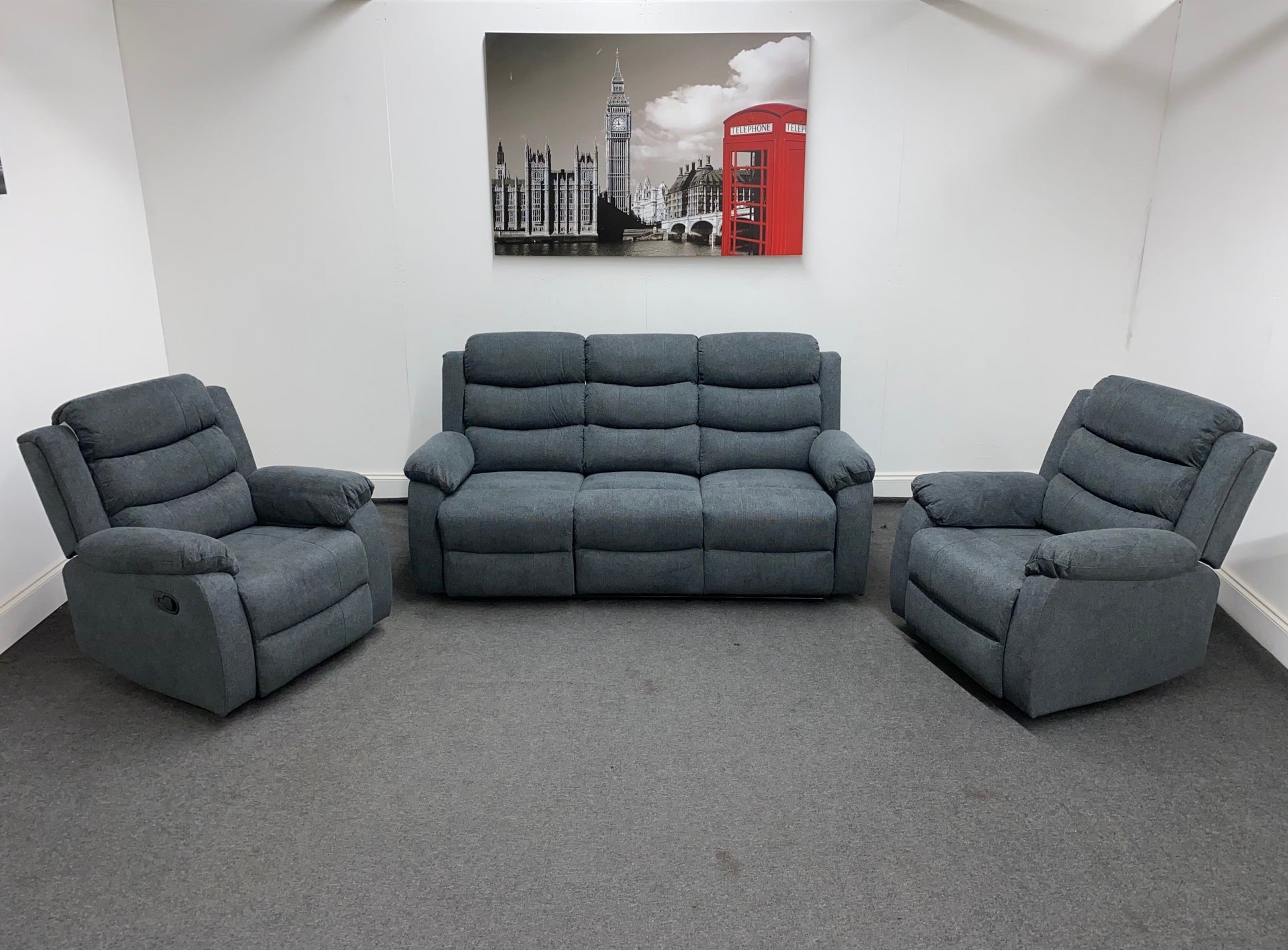 “Lawson" Reclining Charcoal Grey Fabric Sofa Set 3 seater - 190cm 2 seater - 150cm Armchair - 90cm "Create a comfortable living space, this set offers ample seating options for you and your guests. With manual reclining capabilities, you can easily find the perfect position for relaxation. The high-quality fabric provides durability and a stylish touch to your home. Upgrade your living room with this versatile and functional sofa set."
