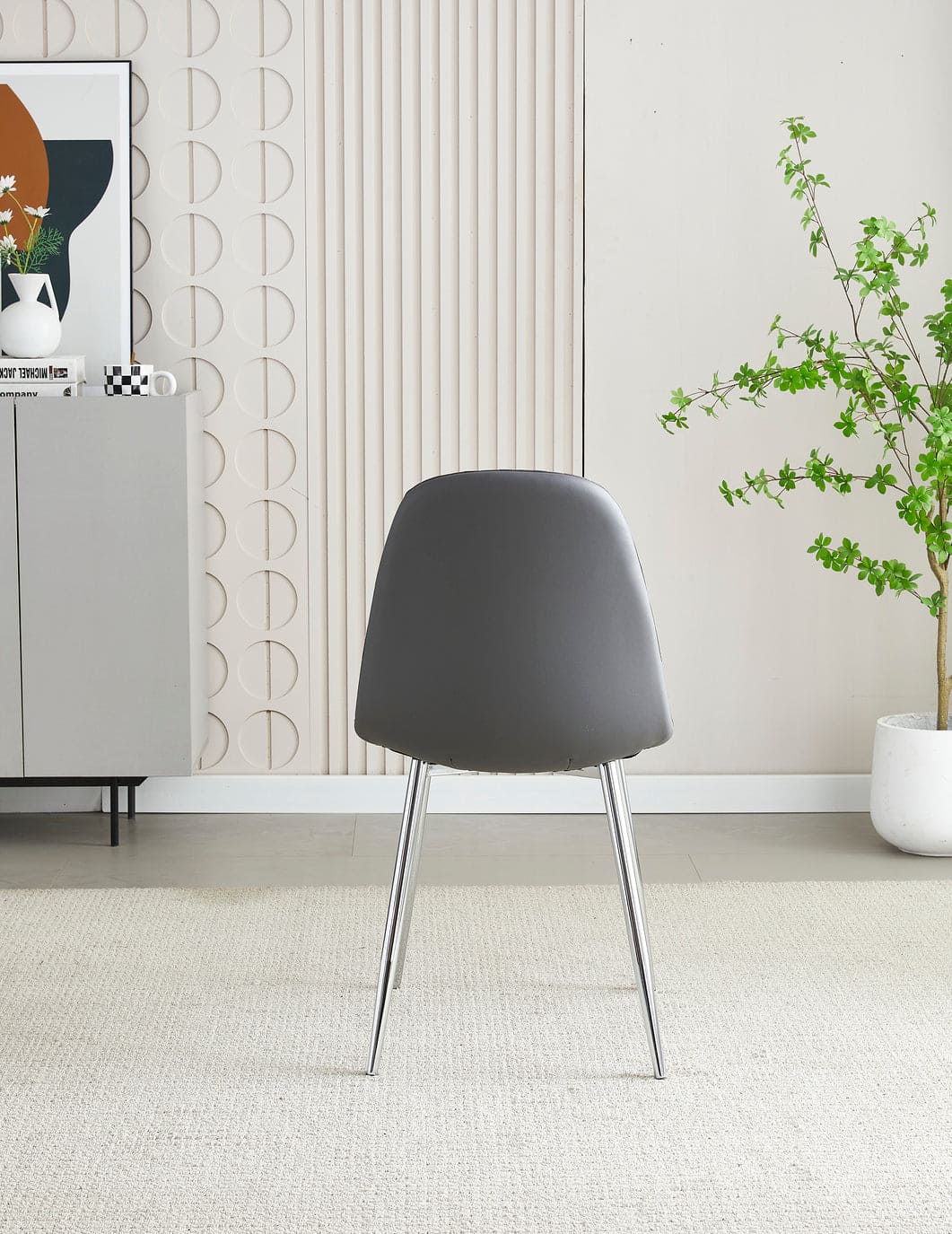 MEX Quilted Back Grey Leather Dining Chairs With Chrome Metal Legs | Set Of 2, 4, 6 or 8