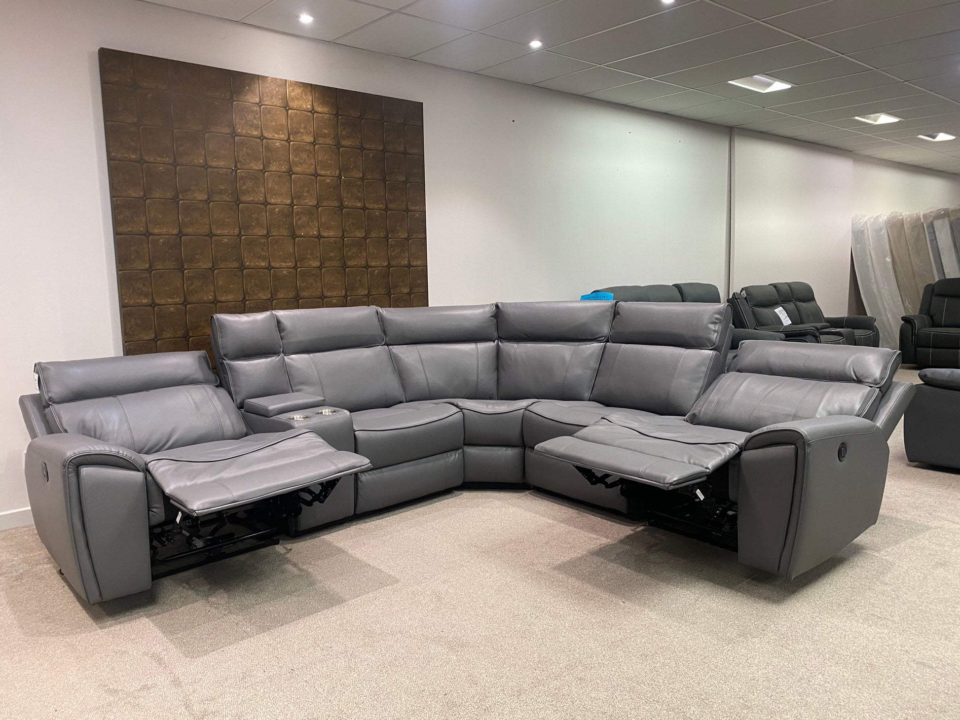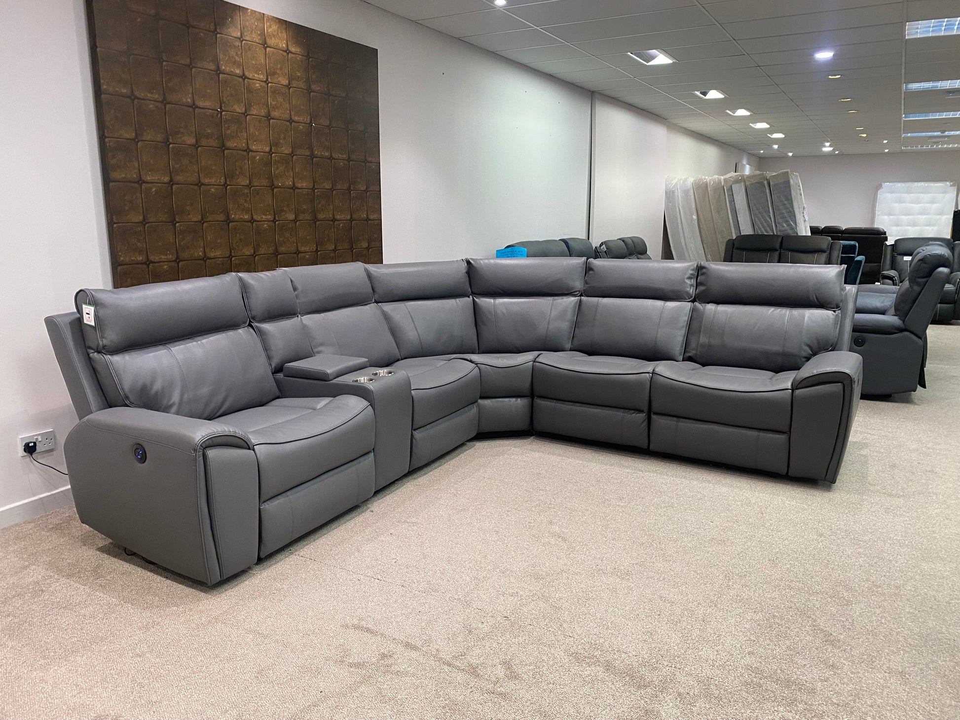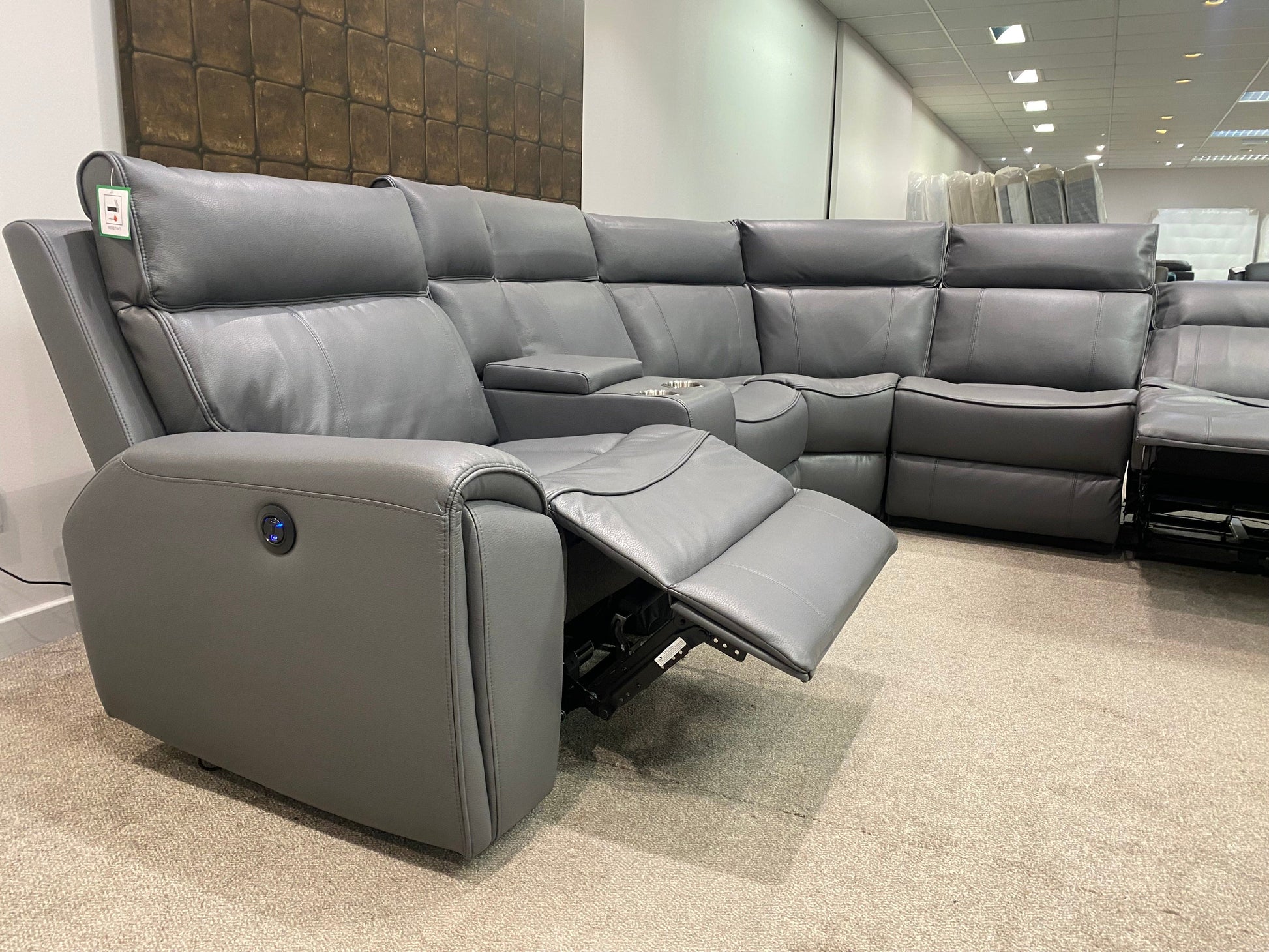 Limited Time Offer! Parker Electric Recliner Grey Leather Corner Sofa With Console