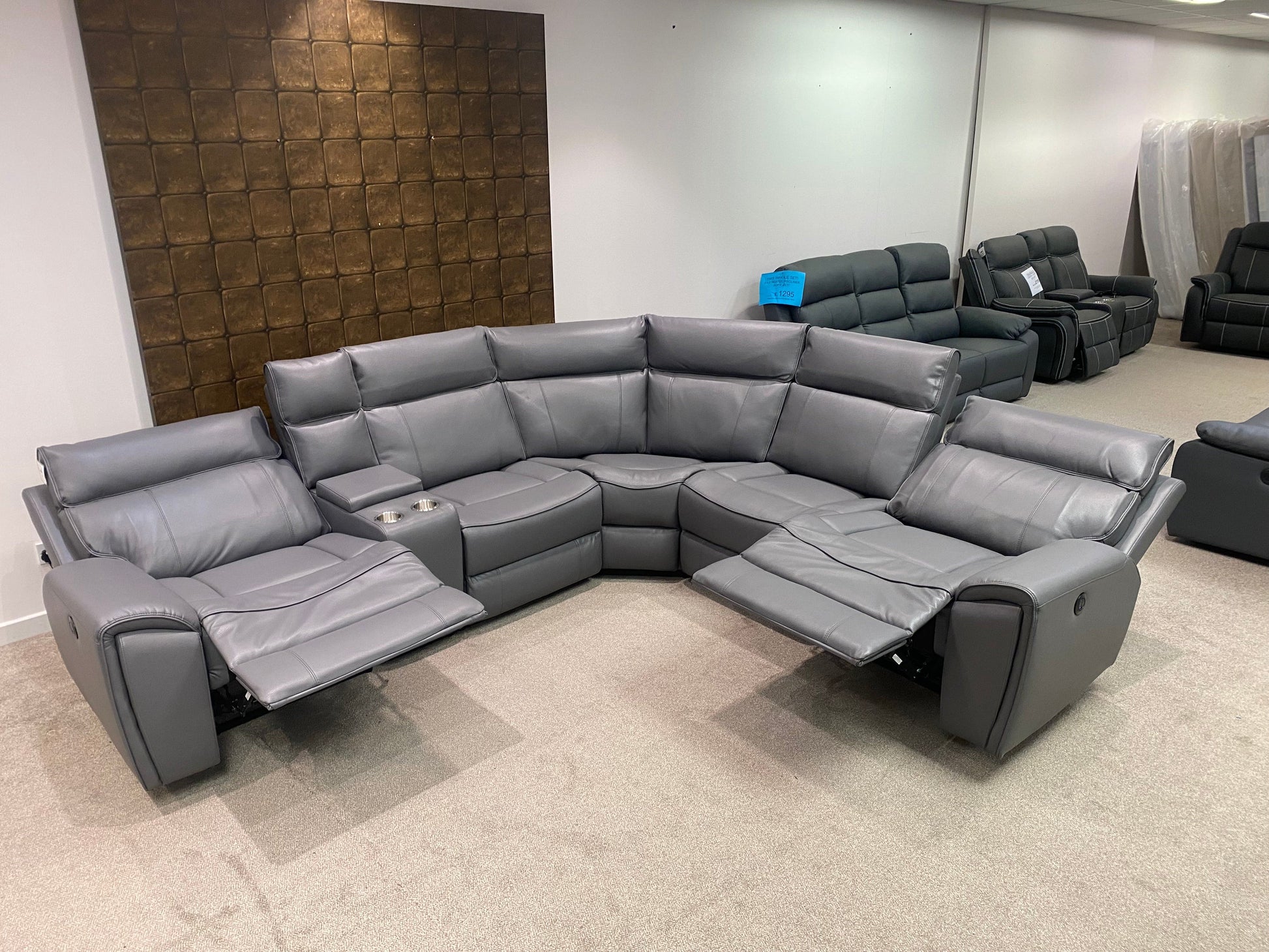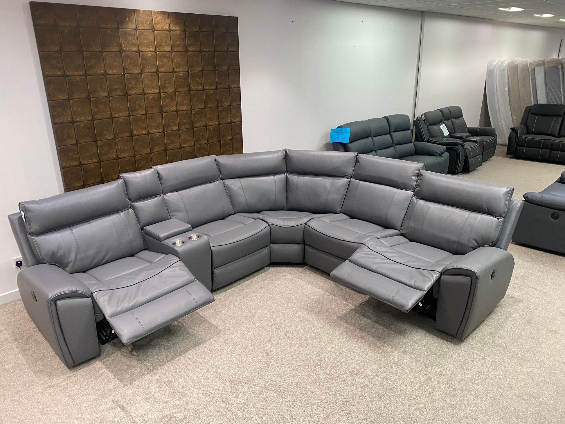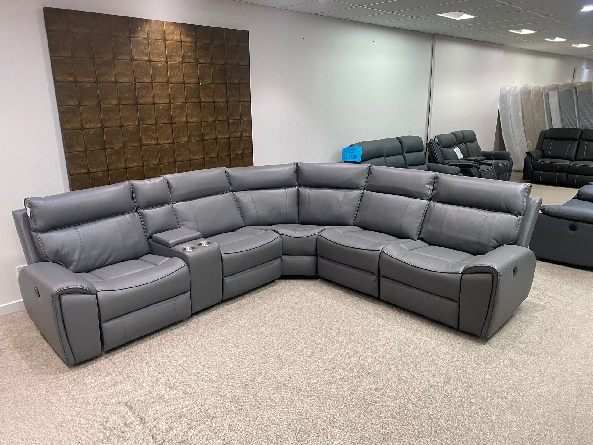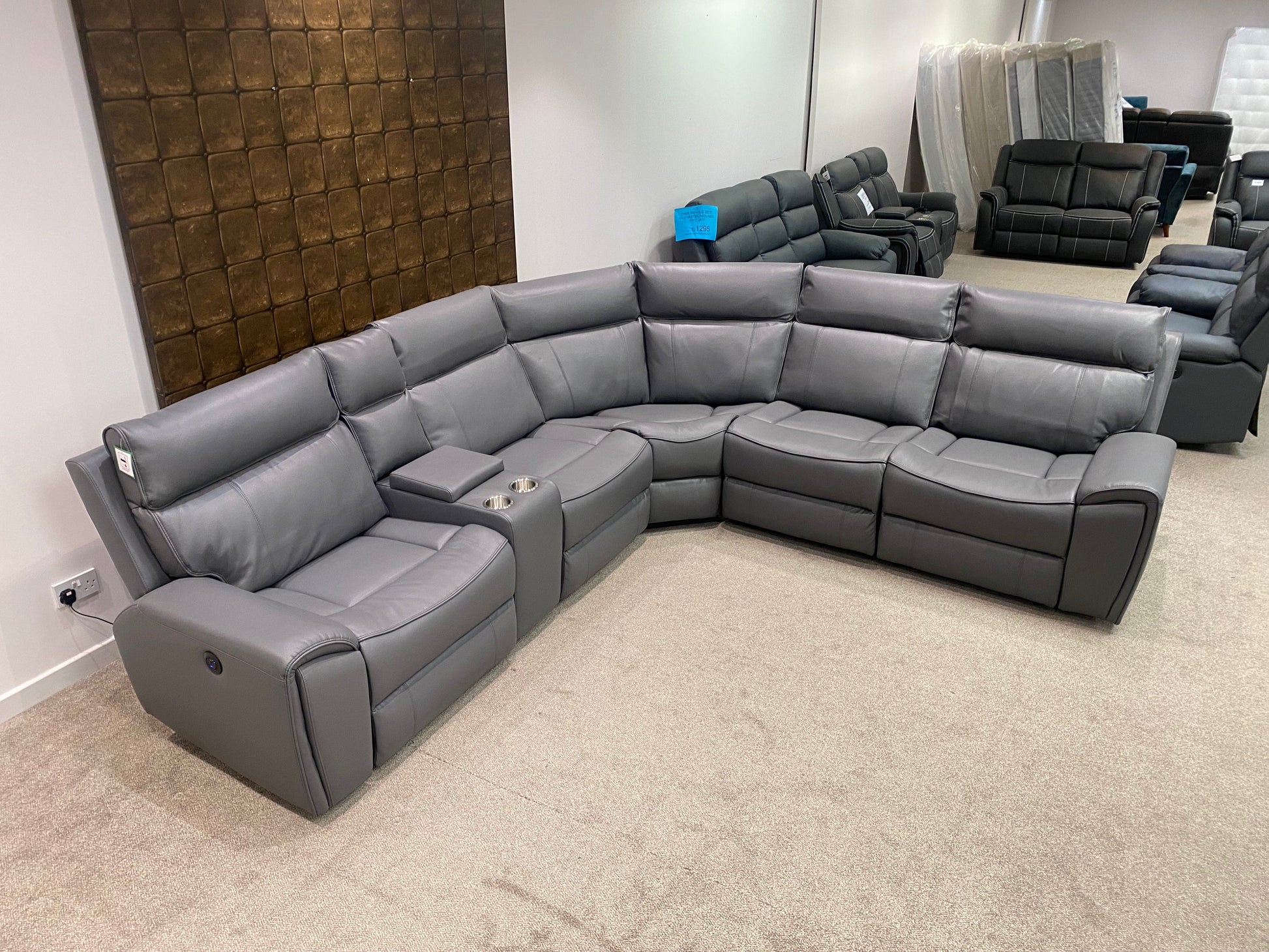 Limited Time Offer! Parker Electric Recliner Grey Leather Corner Sofa With Console