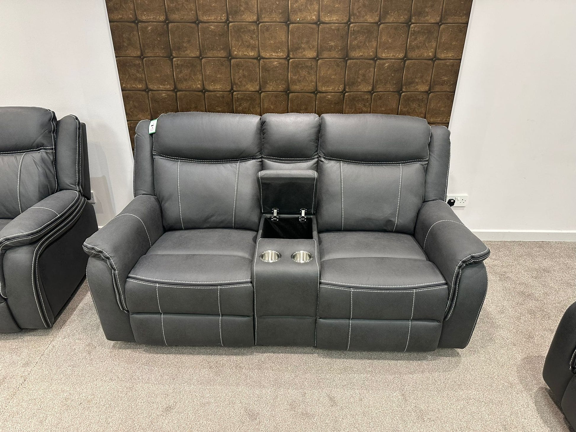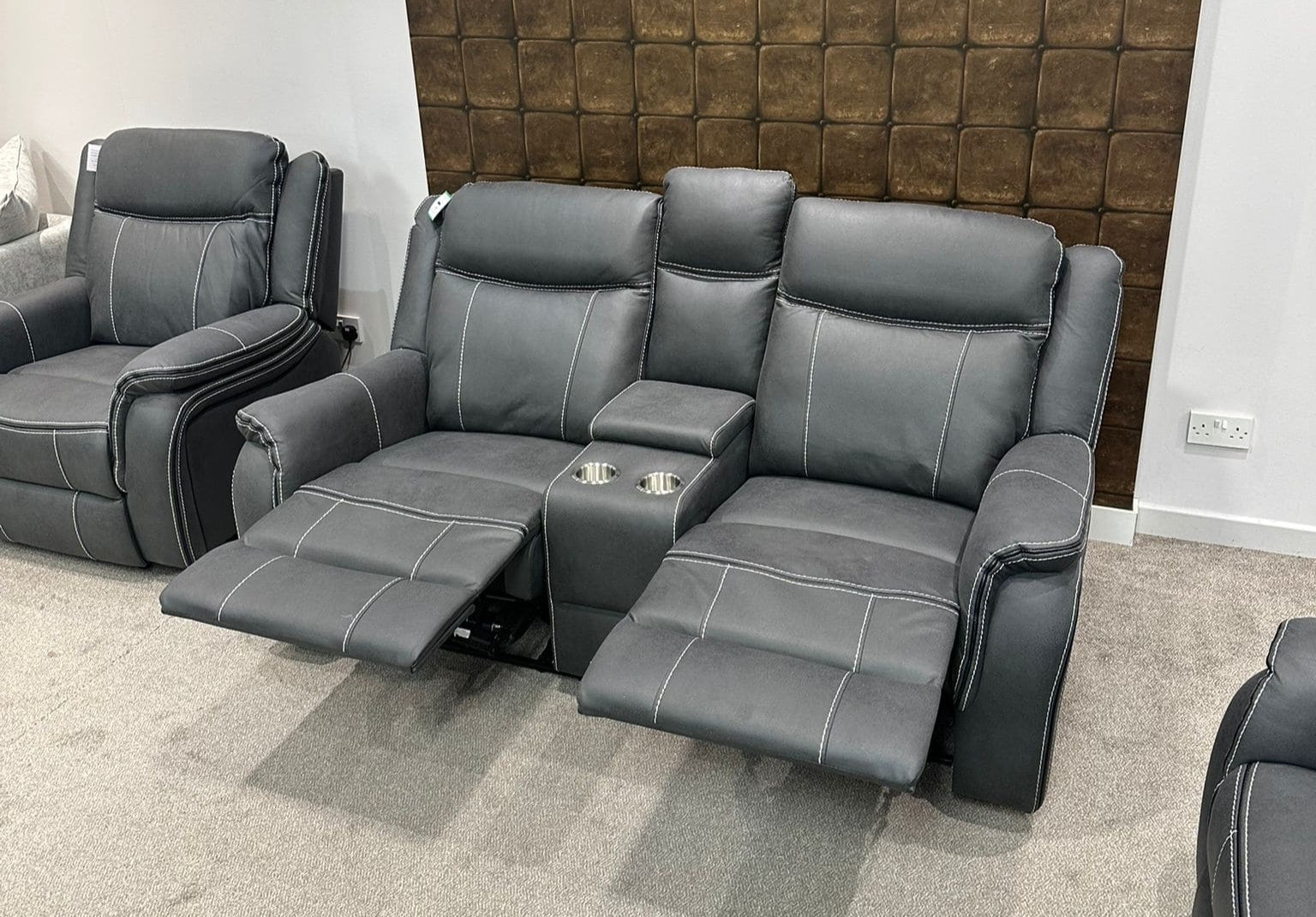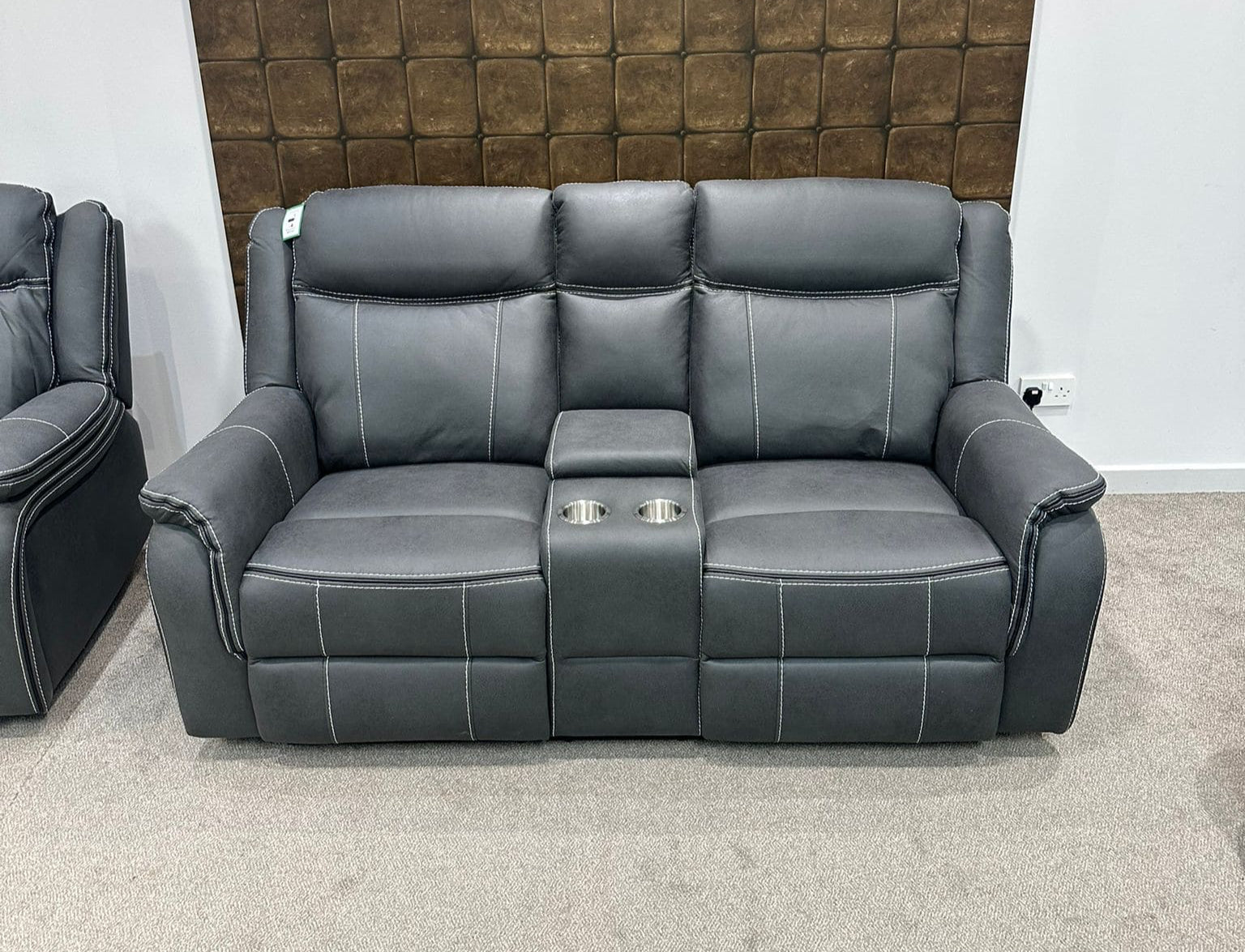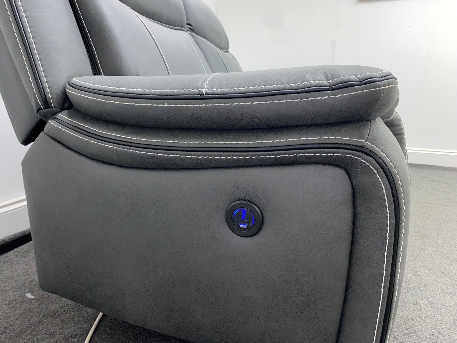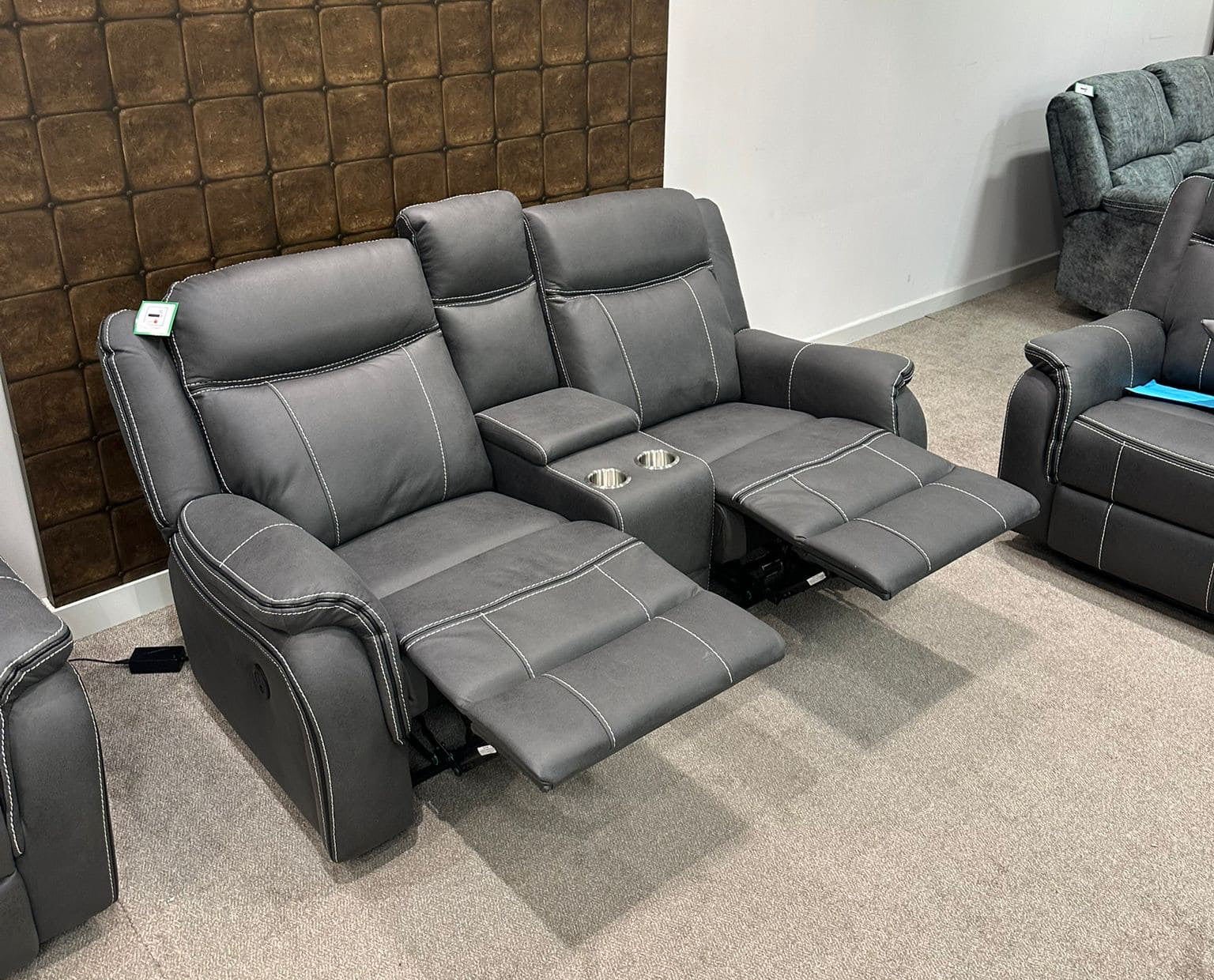 " Mason " Grey Microfibre Fabric 2 Seater With Drinks Console Electric / Power Recliner Sofa Suite + USB Ports