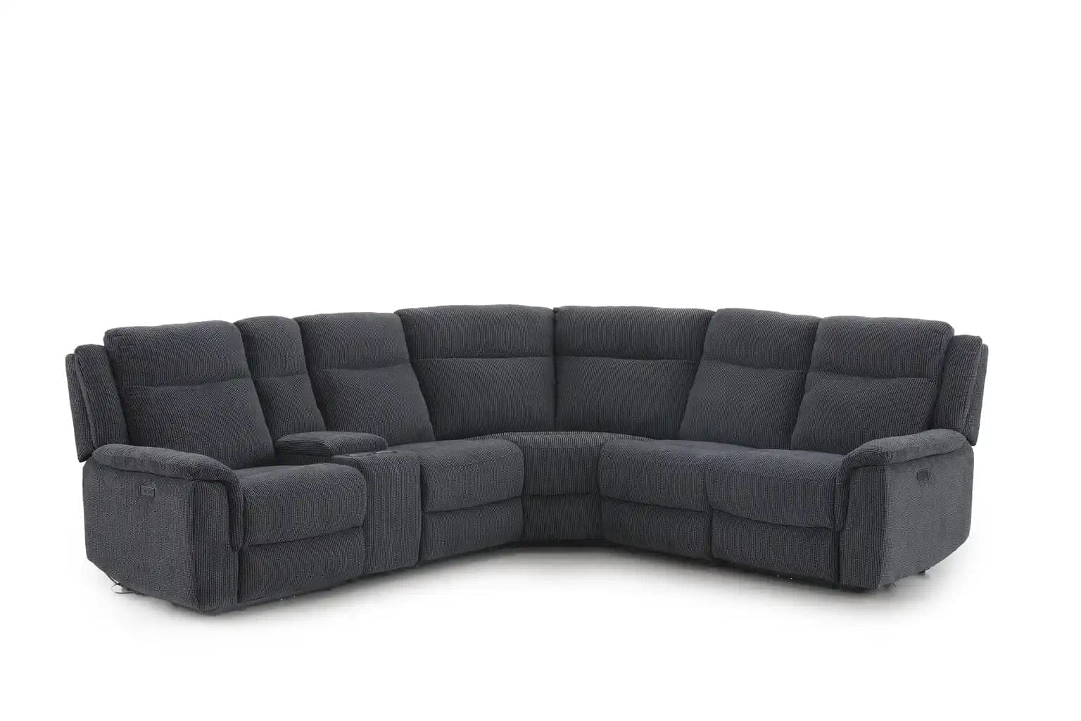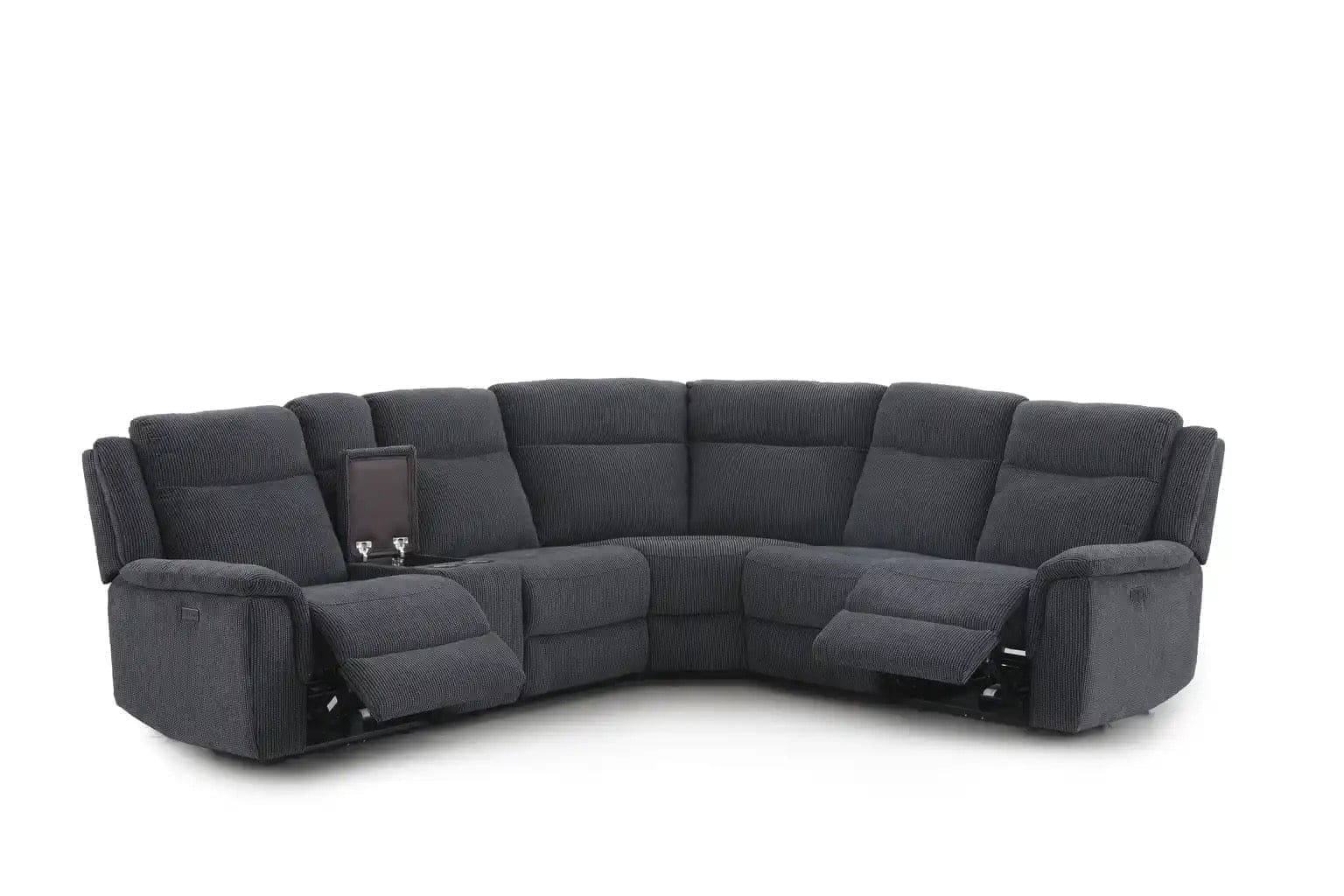 (Back In Stock May 1st) "Tamla" Charcoal Grey Fabric Electric Recliner Corner Sofa With Drinks Console - Fully Sectional & Complete With USB/C Charging Ports