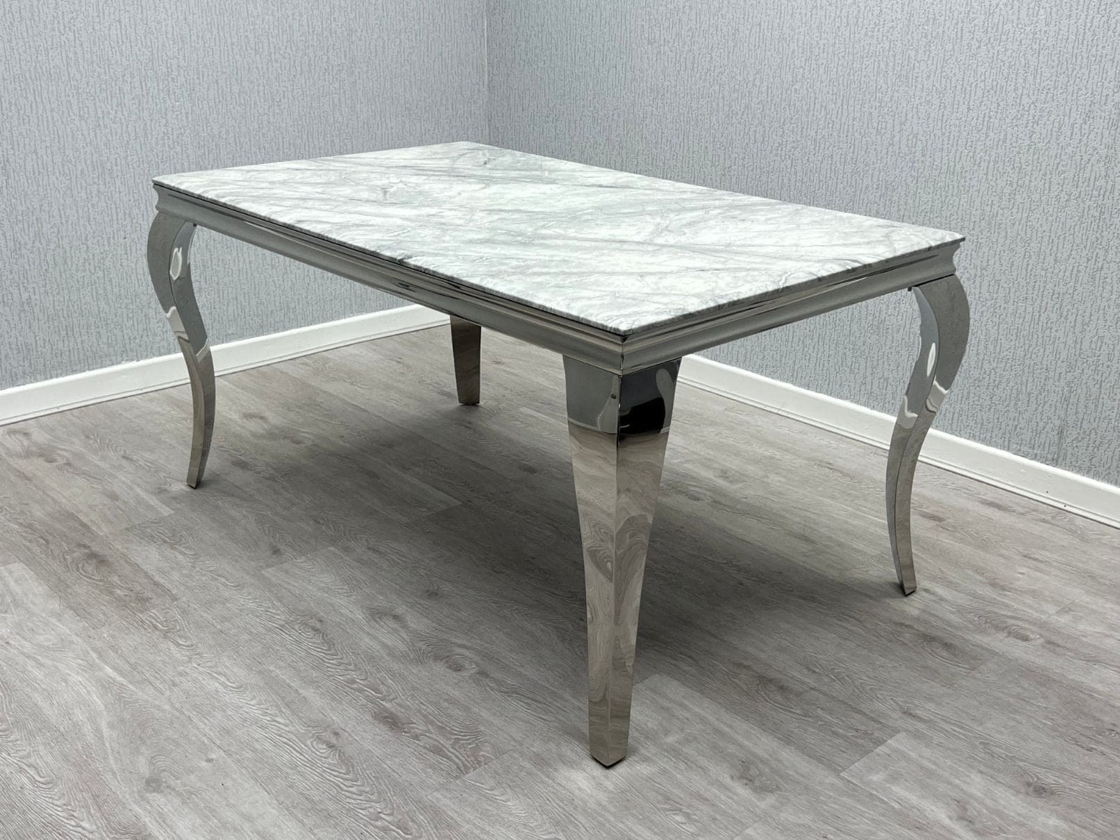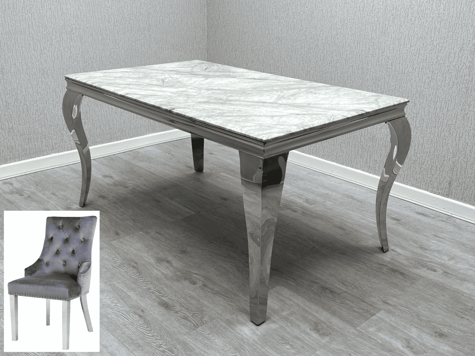 This Whole Dining Set - SFIA Grey Marble Top 180cm Dining Table + 4 or 6 Fabric Quilted Grey Chairs