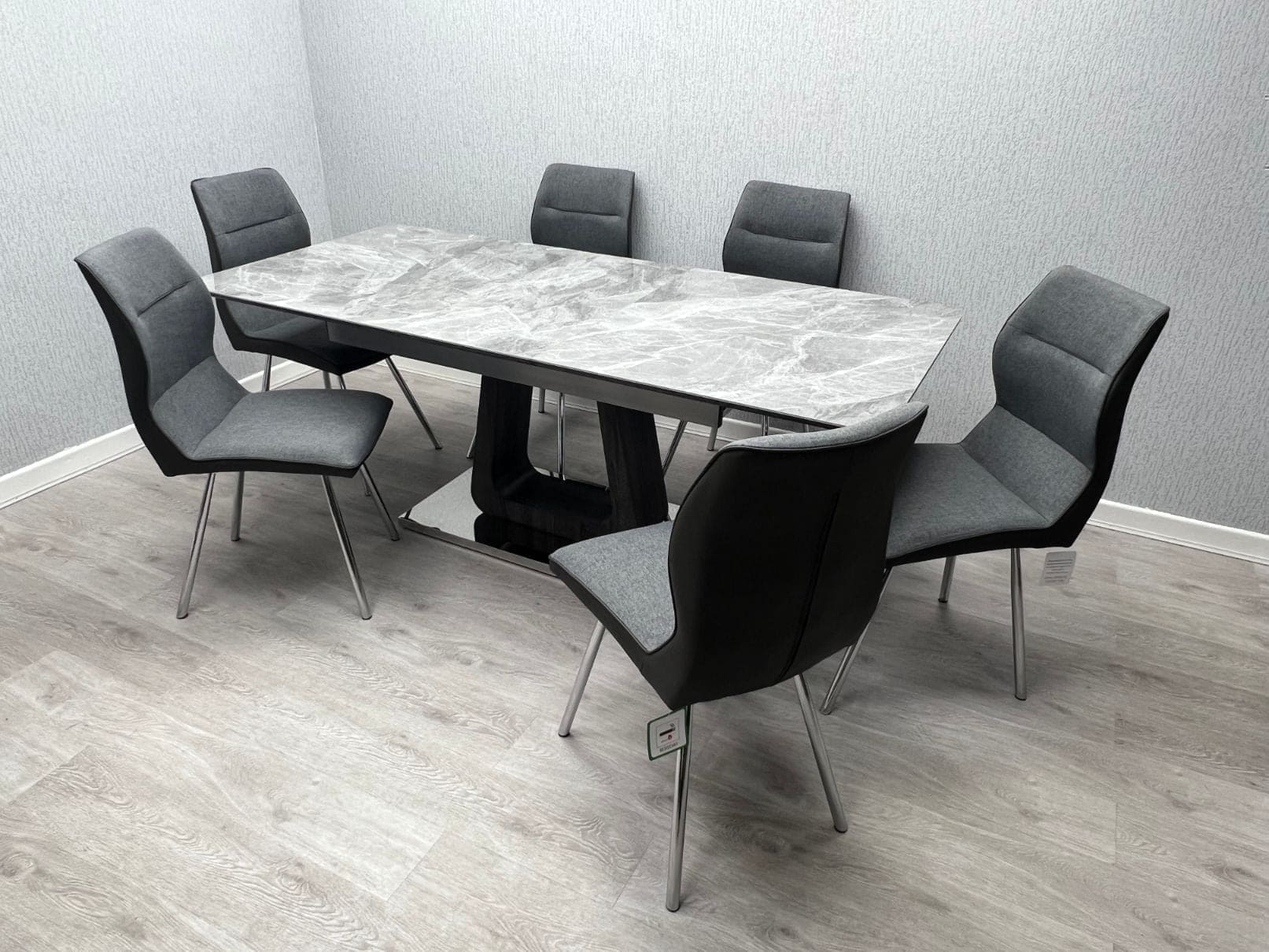 This Whole Dining Set - ZMAT Grey Ceramic Extending Dining Table + 6 Chairs Leather / Fabric Set