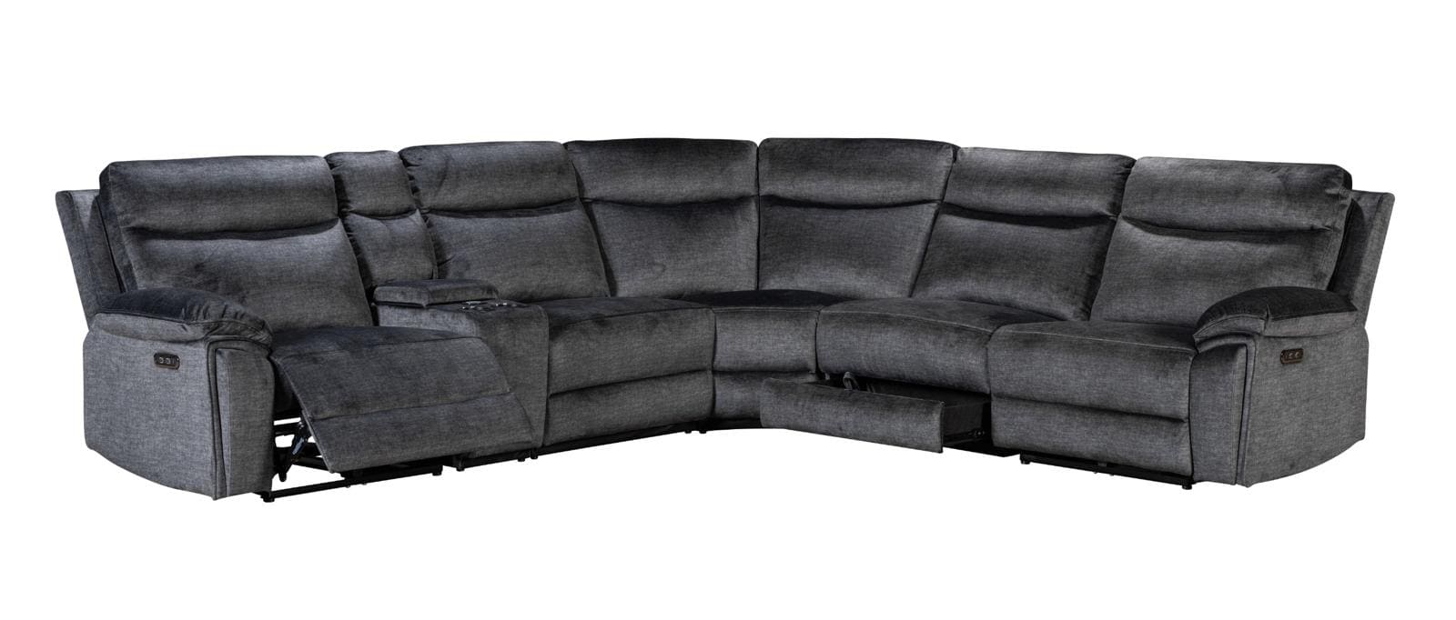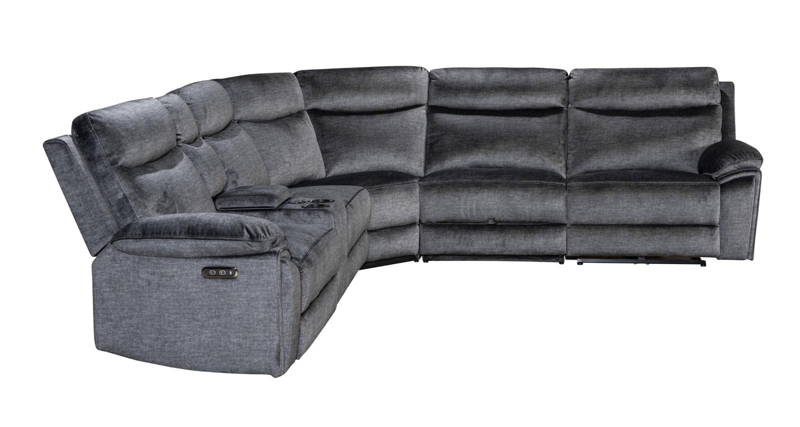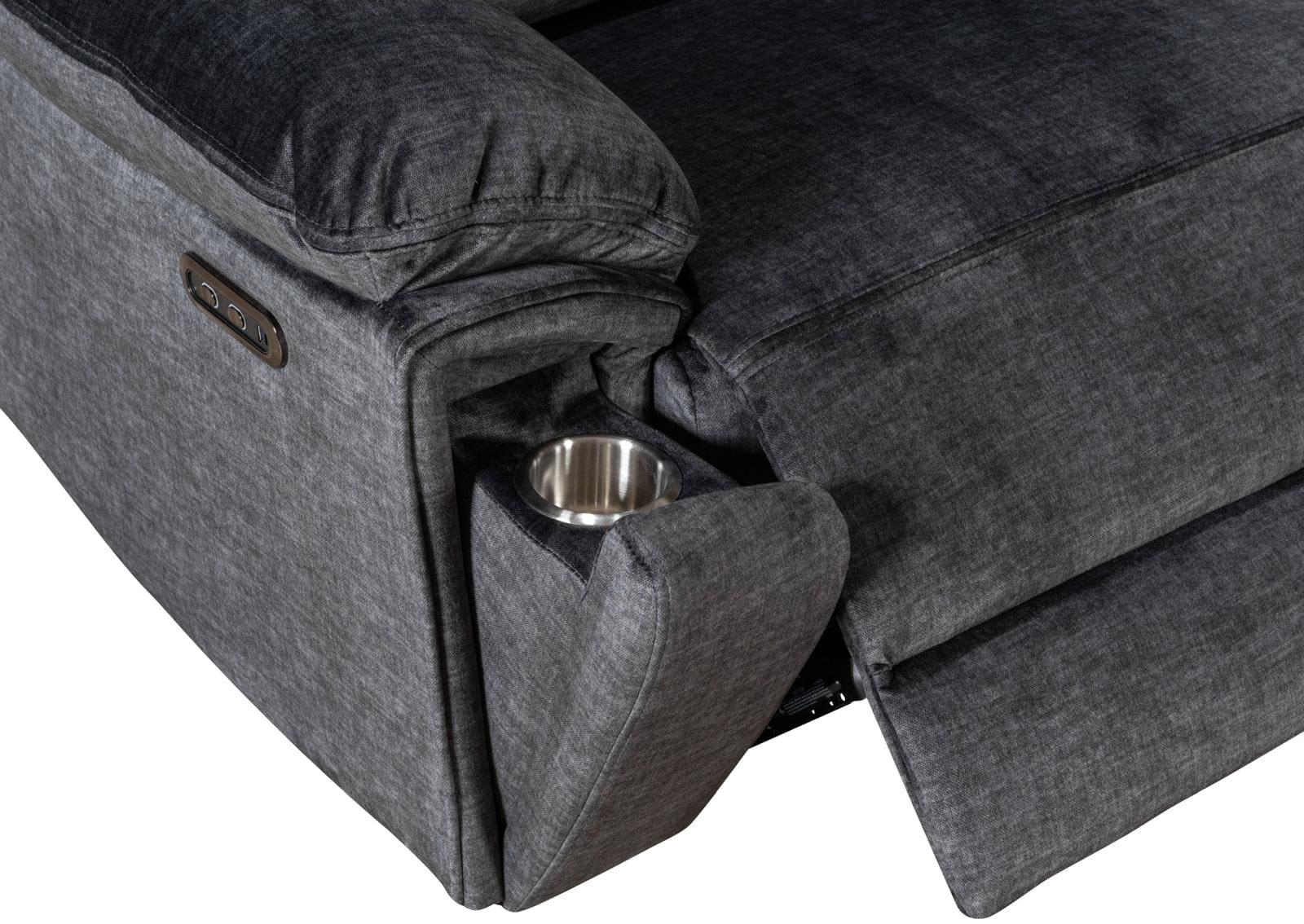 " Trek " Drinks Cooling Cupholders Plush Grey Fabric Power Recliner Large Corner Sofa With USB Charging Ports